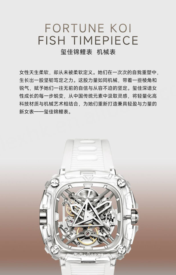 CIGADesign 2024 Women's Koi Mechanical Watch New Fashion Transparent Niche Silica Gel Band 3ATM Waterproof