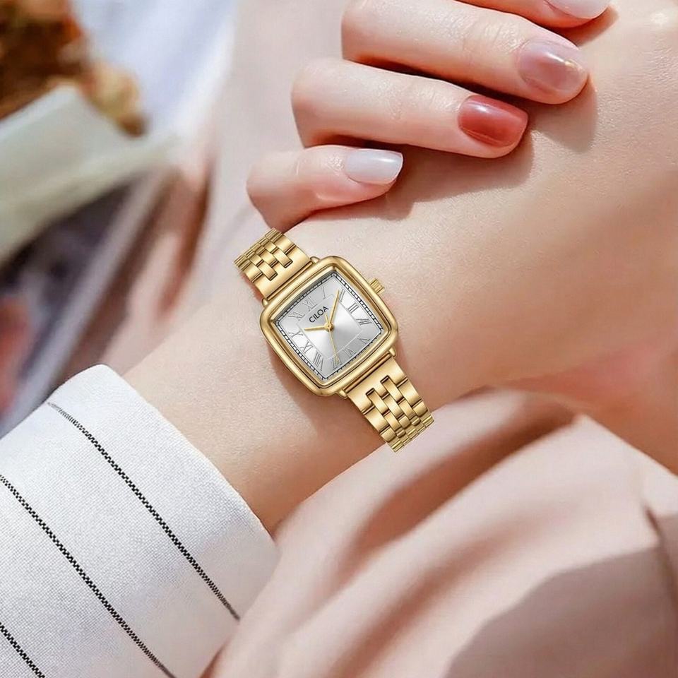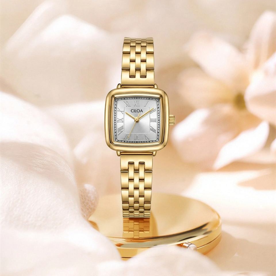 CILOA Square Gold Retro Watch for Women, Customizable High Beauty Waterproof Quartz Watch, Light Luxury Gift