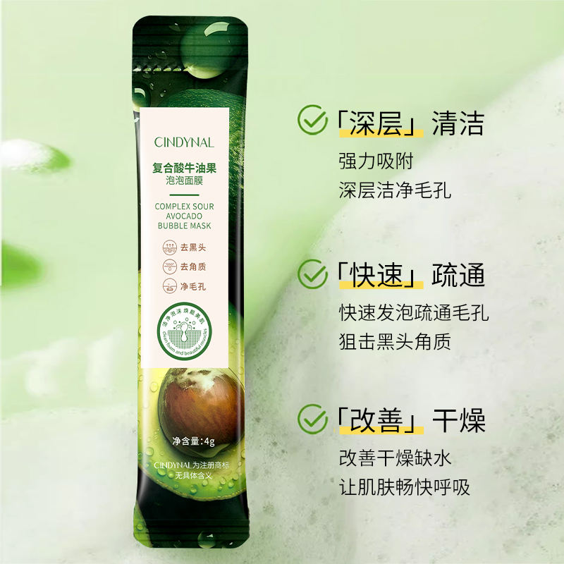CINDYNAL 4g*12 pieces Wholesale cleaning Soothing moisturizing Improve Roughness Dryness compound avocado bubble facial mask