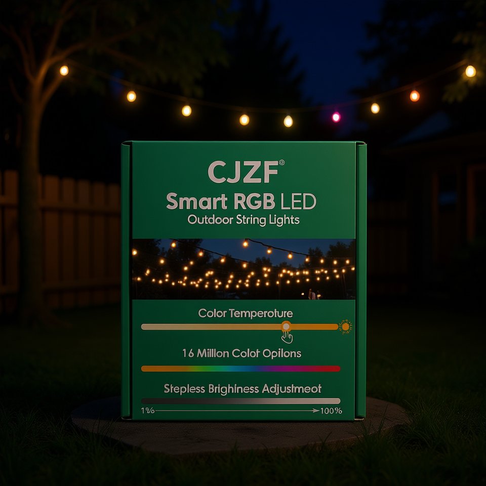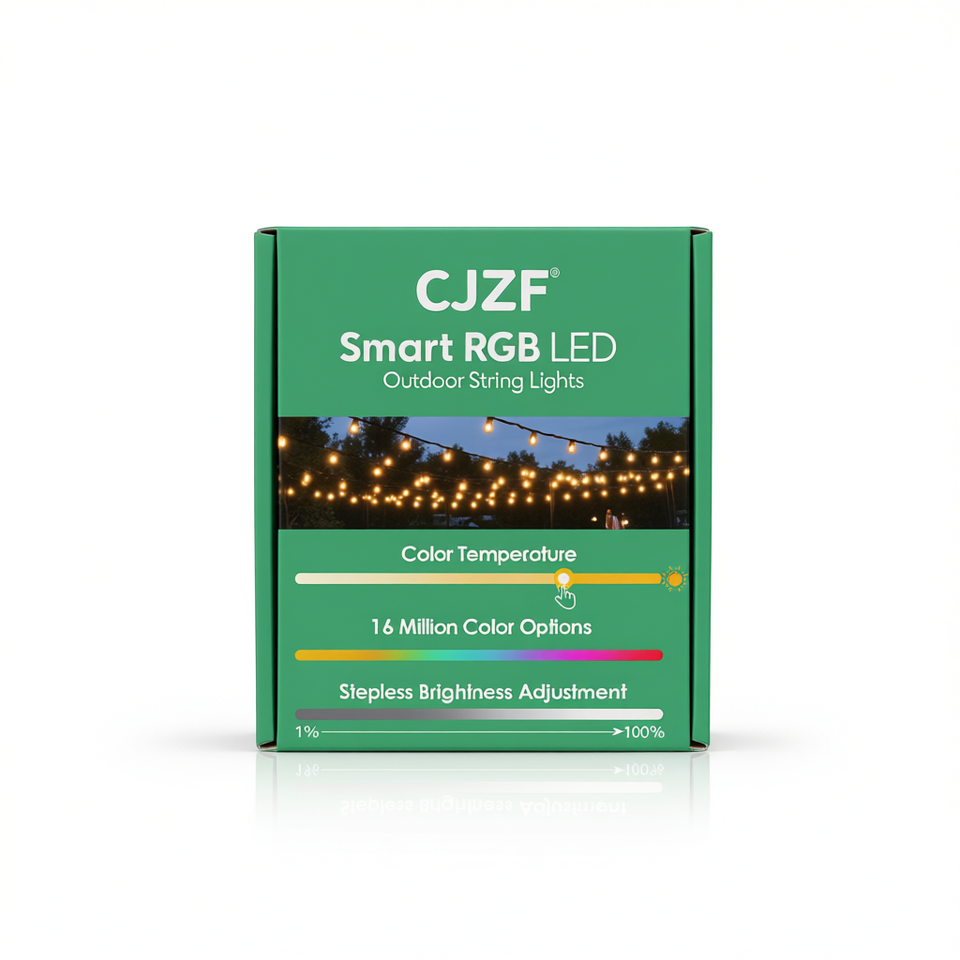 CJZF Smart RGB LED Outdoor String Lights IP66 Waterproof APP Control 15 Bulbs Wi-Fi Christmas Rainbow Lights
