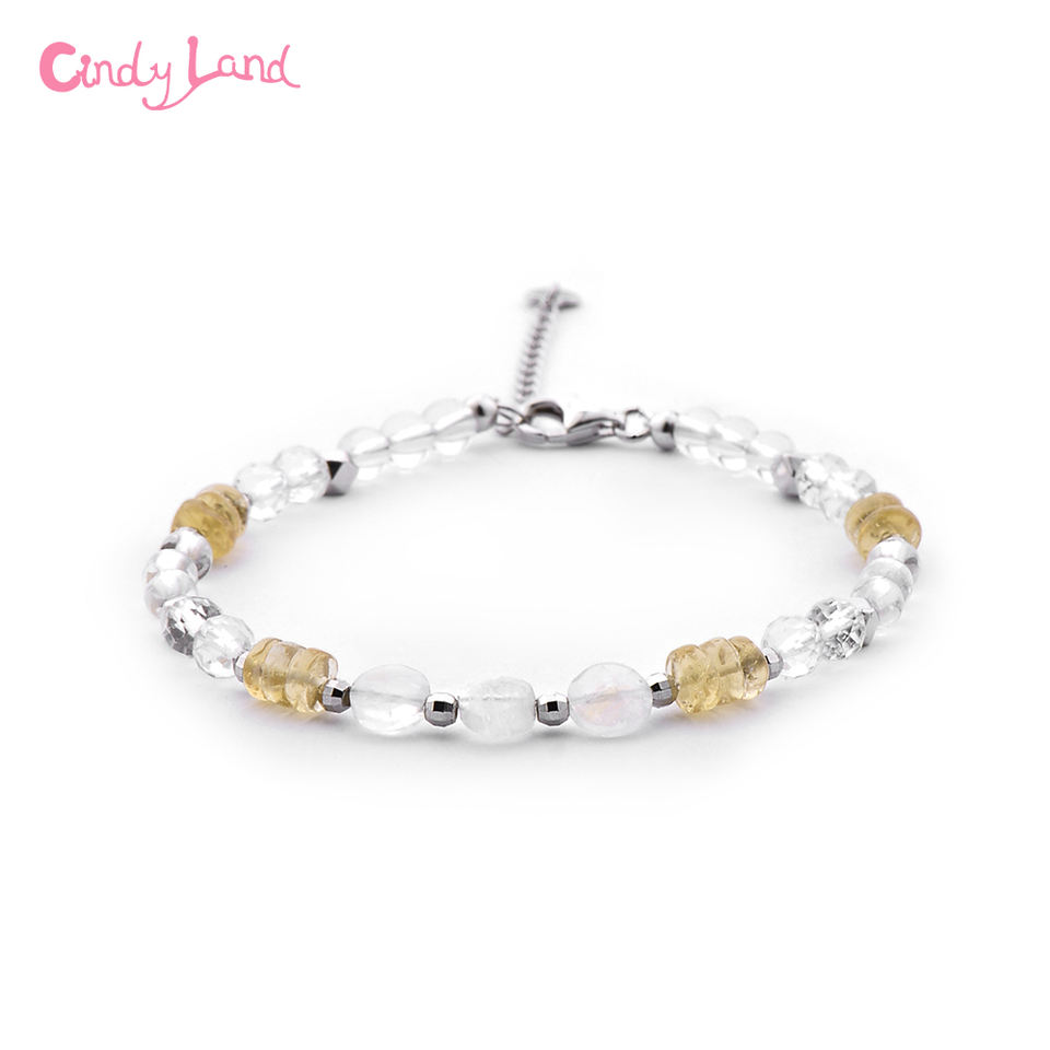CL Natural Sterling Silver Beaded Crystal Jewelry Women 18K Gold Plated Yellow Trendy Fashion Bracelet