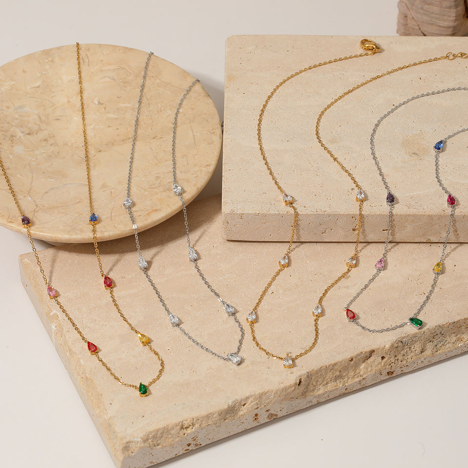 CLIORO Colorful Zircon Christmas Trendy Gold Plated Fashion Jewelry Stainless Steel Women Charm Necklaces for Women