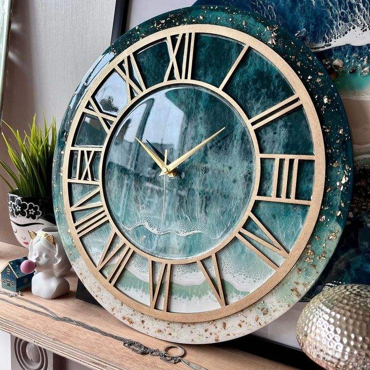 CLOCKS Handmade Epoxy Resin Wall Clocks for Exquisite Spaces Unique Home Decor Gift Wall Epoxy Ocean Clock by Antique Creation