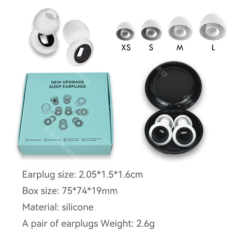 Silicone Sleep Noise Reduction Earplugs with 4 Sizes Ear Caps