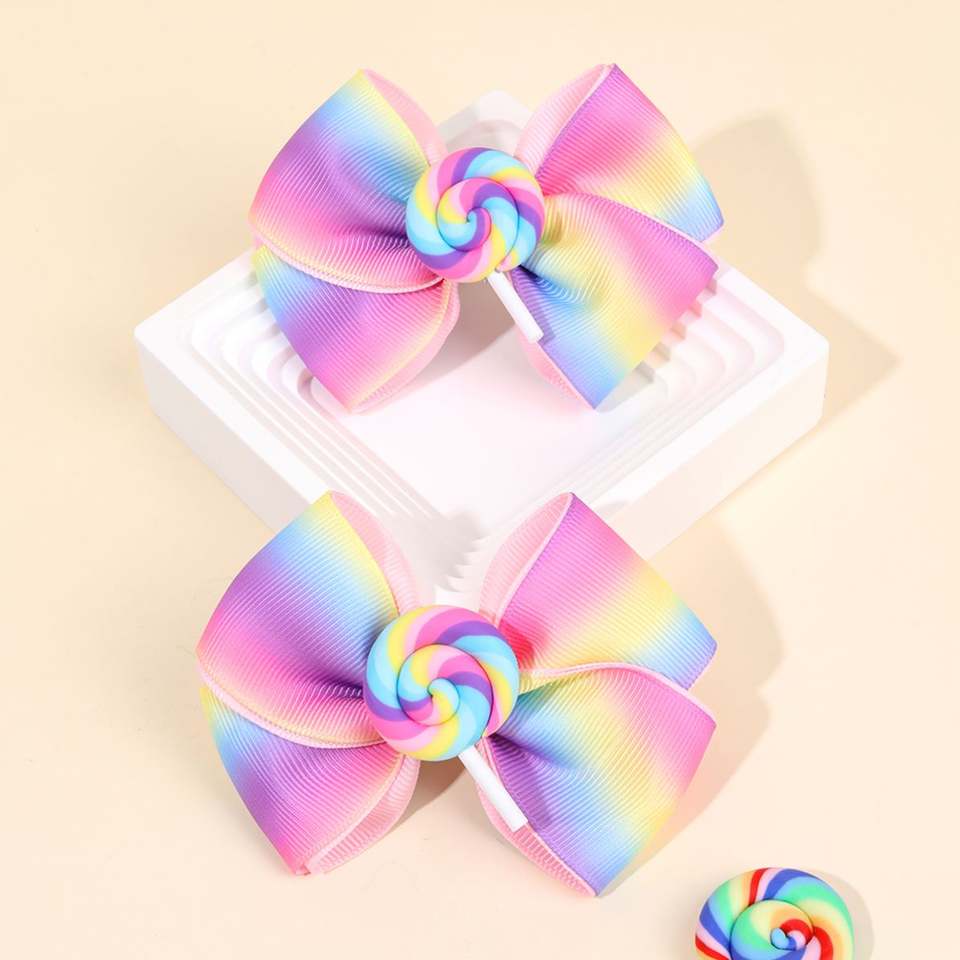 CN 2pcs/set Princess Hair Accessories Cute Candy Hair Bows Headwear Hairpin Lollipop Hair Clips for Kids Girls