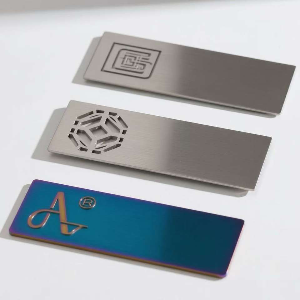 CNC Custom Logo and Silver Brushed Stainless Steel Metal Name Badge Tag Laser Engraved Nameplate Magnetic Metal Name Badge