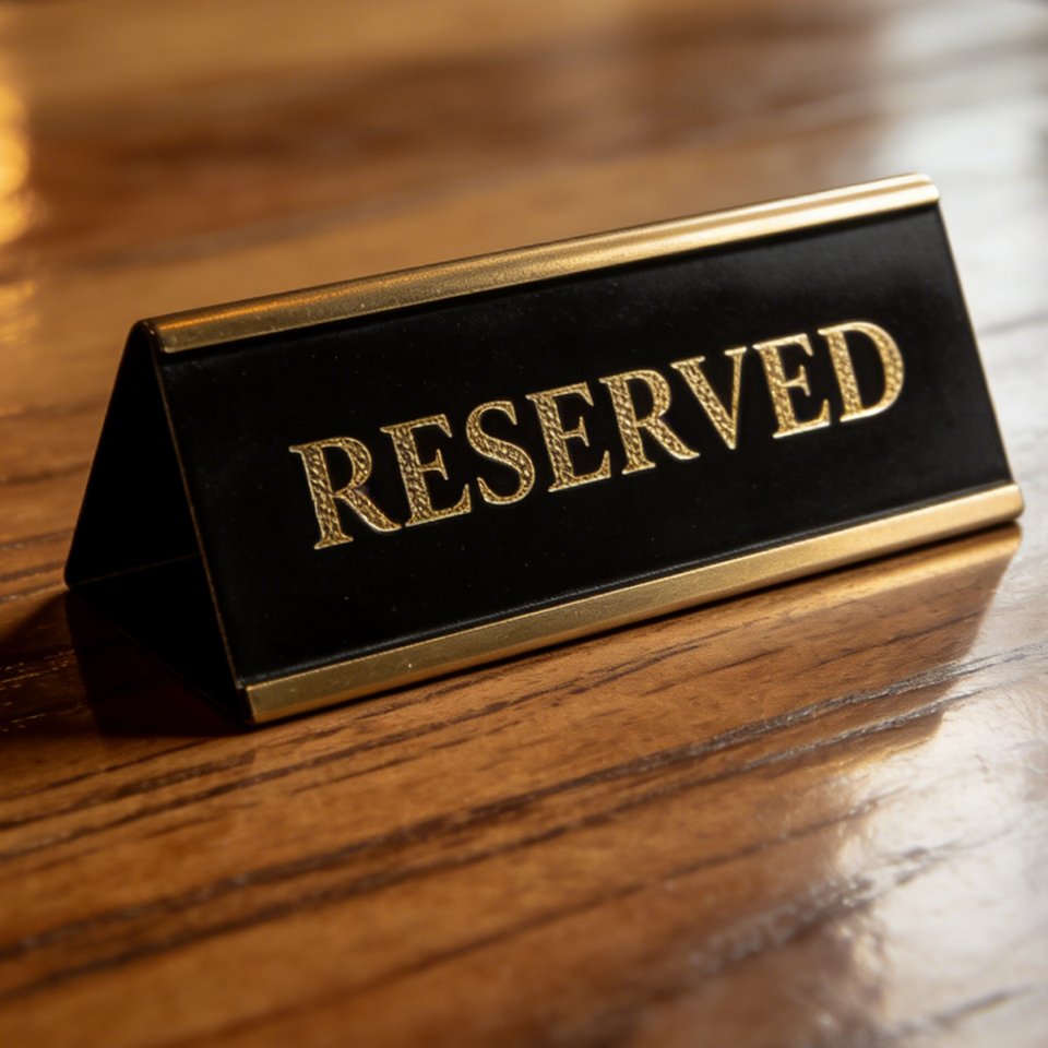 CNC Machined Stamped Reserved Table Sign-ISO9001 Approved Durable Stainless Steel Plaque for Hotel Wedding & Restaurant Use
