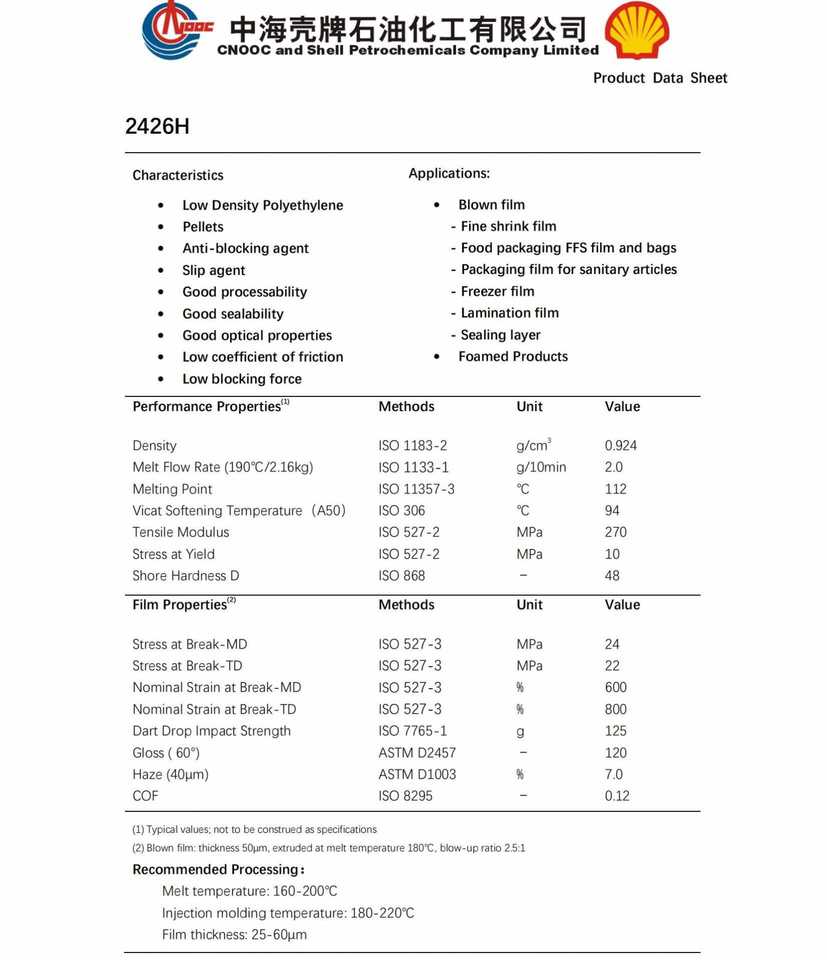 Product name:LDPE 2426H film grade Low Density Polyethylene ldpe granules