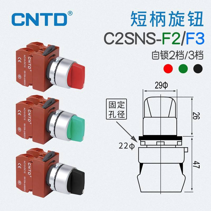 CNTD Changde C2SNS-F2/F3 Self-Locking Push-Button Switch Short-Handle Two-Position Three-Position Rotary Switch with Opening 22