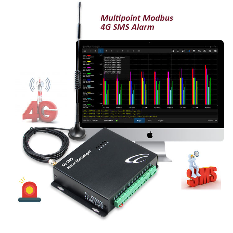 CO Smoke Detection Display Alarmer Alarm Security System 4G RS485 Modbus Data Logger Gsm Sms Alarm