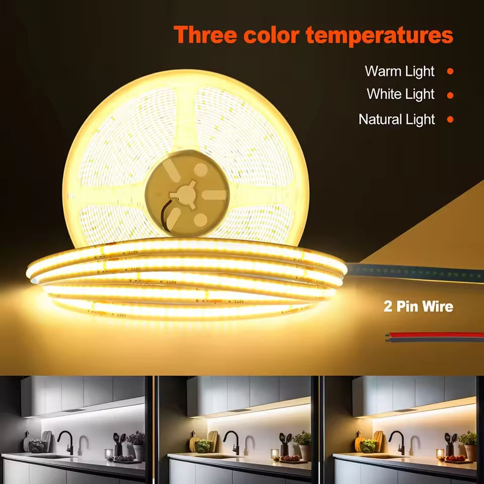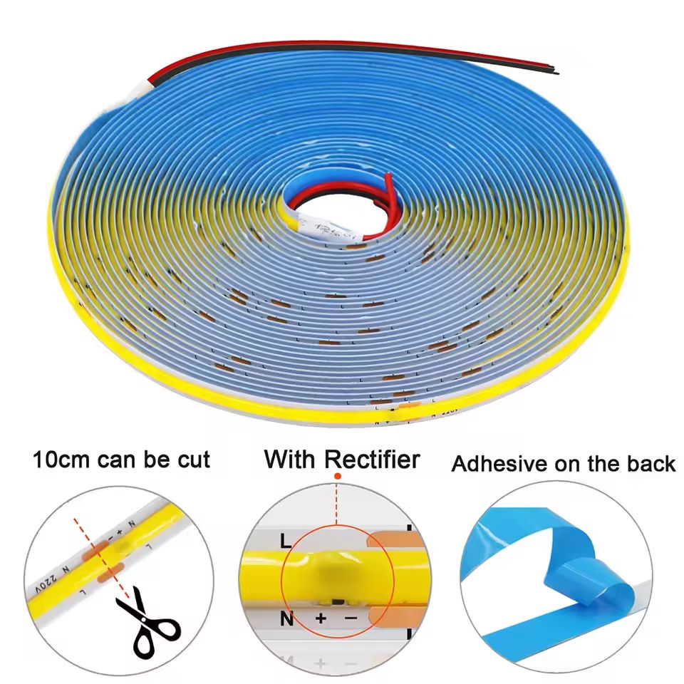 COB Strip Light 220V 110V 240LEDs 10cm Per Cut Flexible Lamp with IC Chip High Bright Linear Lighting No Need Plug Led Strip
