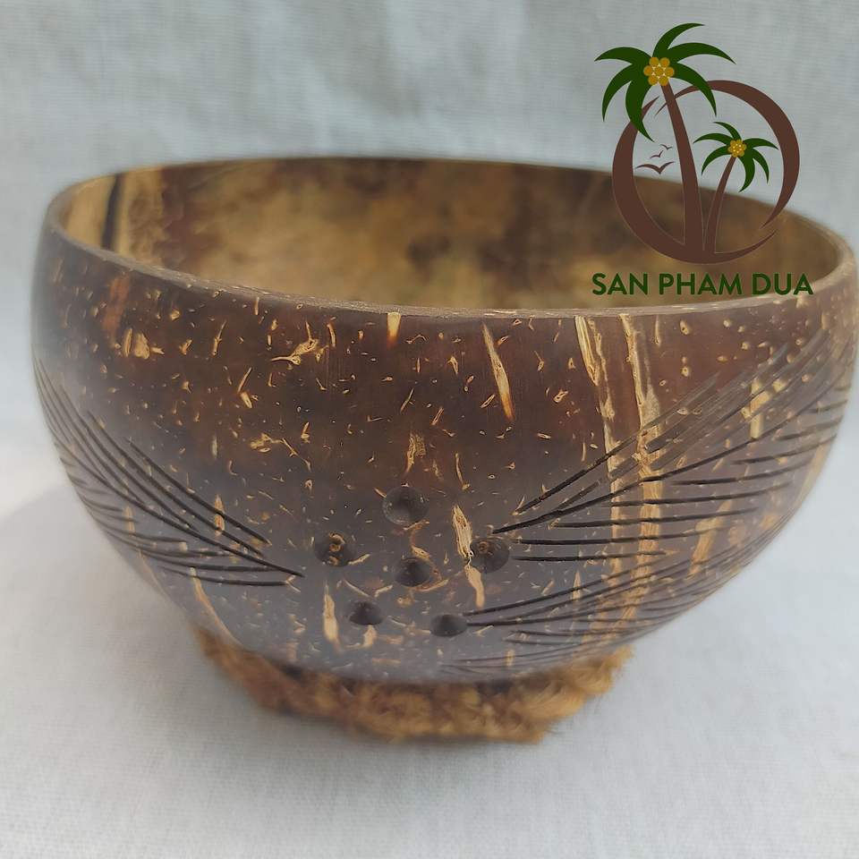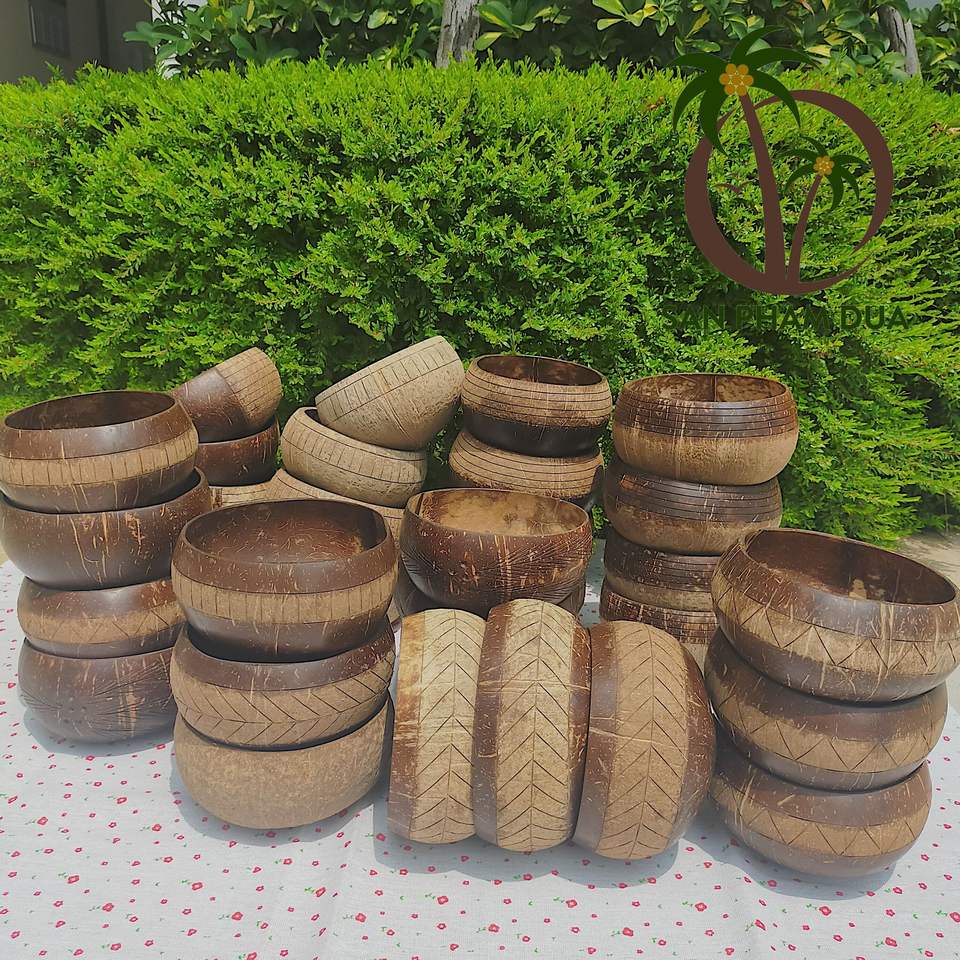 COCO-ECO Folk Art Style Annatto Wood Bowl Eco-Friendly Coconut Shell Design Salad Acai Smoothie Handcrafted Vietnam Eco Crafts