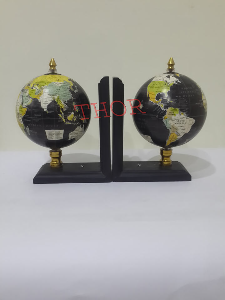 COLLECTIBLE BLACK WOODEN GLOBE BOOKENDS MAP NAUTICAL BOOK STAND LEARNING BOOKEND OFFICE DECOR
