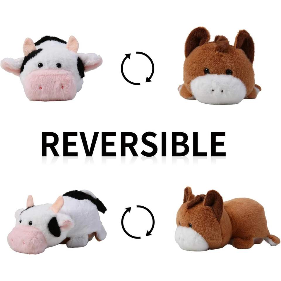 COLOBOBO Adorable Cute 2-in-1 Flippable Plush Figure Toy Reversible Horse to Cow Stuffed Animal for Toddlers and Children