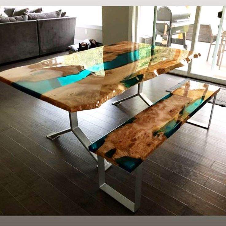 RESIN AND WOODEN TABLE