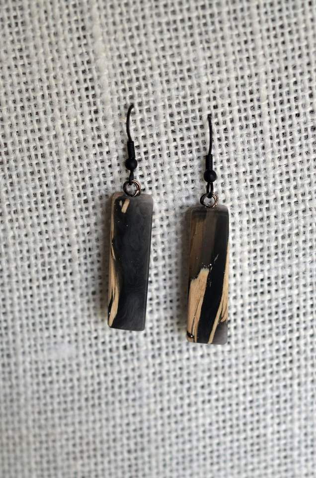 COMBINE WOODEN STRIKING WARMTH DANGLES Gold Foil Black White Resin Heart Shape Earrings Square Round Geometric Wooden Resin