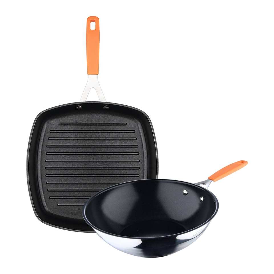COMPACT San Ignacio Grill Pan Set (28x28cm) + Wok (28cm) in forged aluminum for induction hobs