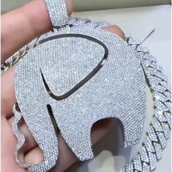 CONCEPTION Hip Hop Animal Elephant Iced Out Moissanite 18k Gold Plated 925 Silver Pendant Necklace for Men and Women