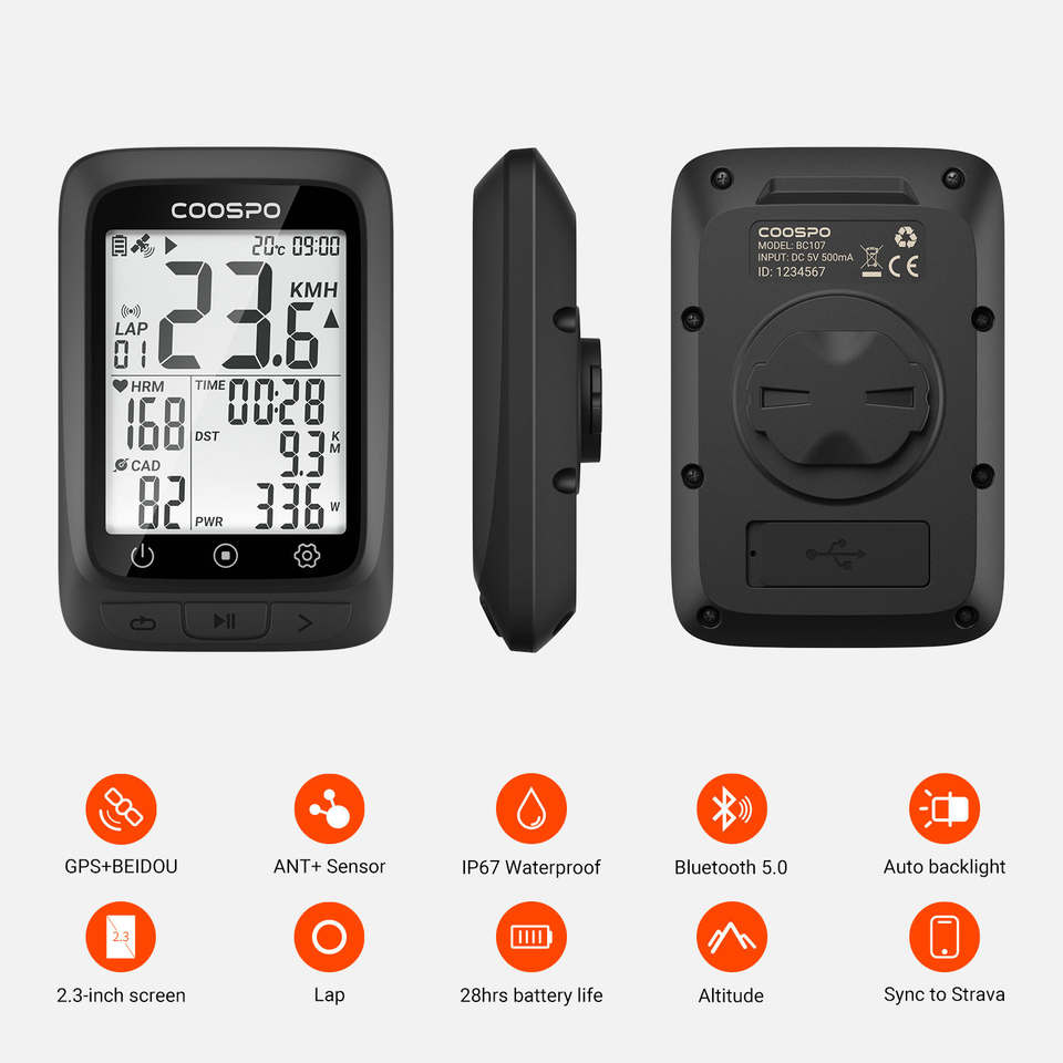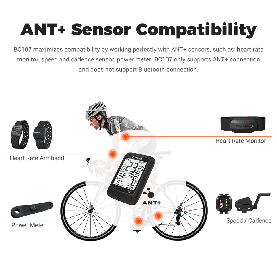 COOSPO BC107 Bicycle Computer ANT+ BLE GPS Wireless Speedometer 2.3'' Inch Screen 28hrs Battery Life Smart Sensor for Bicycles