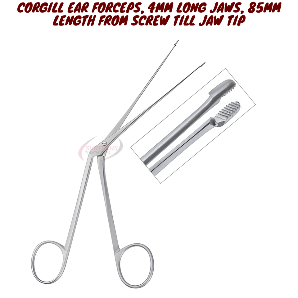 CORGILL Manual Ear Forceps 4mm Long Jaws 85mm Total Length CE Certified ENT Surgical Instrument Stainless Steel Precision
