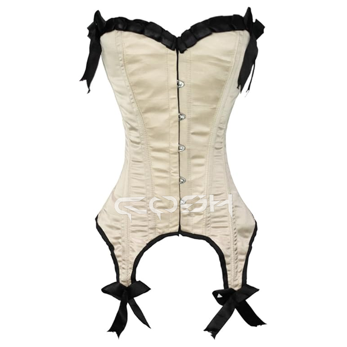 COSH CORSET Breathable High Compression New Design Over Bust Steel Boned Beige Party and Club Wear Satin with Front Busk Closure