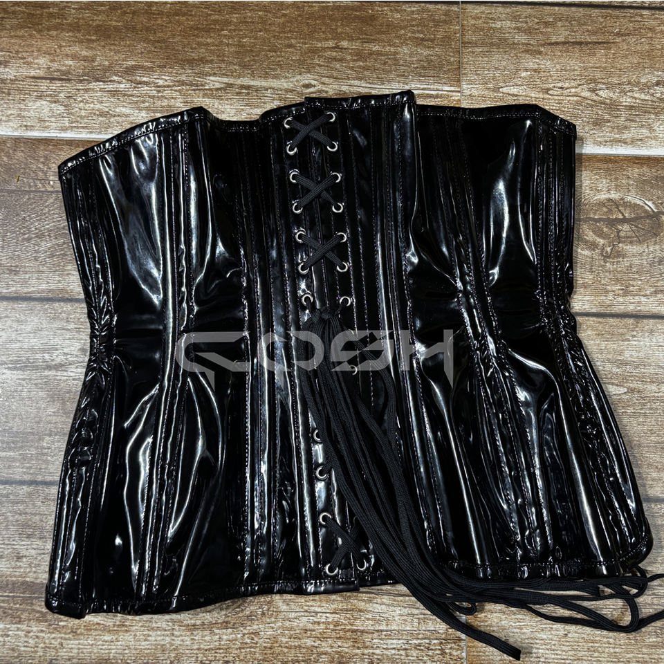 COSH CORSET Glossy Patent PVC Underbust Steel Boned Bustier Night Club Wear OEM Corsets Manufacturer