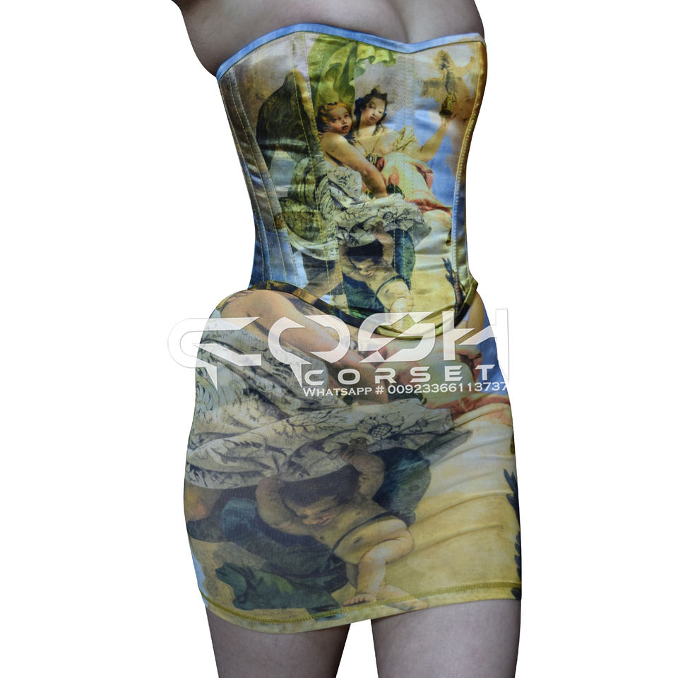COSH CORSET High Quality Baroque Art Print Satin Corset Top with Mesh Skirt Sublimated Breathable and Decorated with Rivet