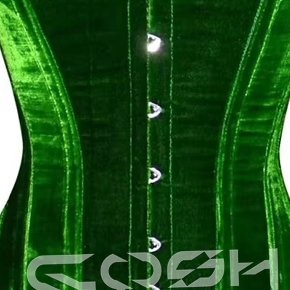 Breathable Rivet Waist Slimming Belt Overbust Steel Boned Green Velvet Black Trim Adjustable High Compression Plus Size Body