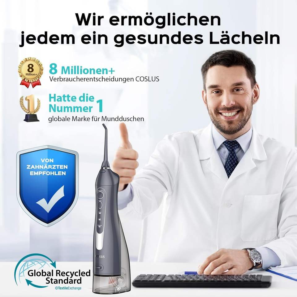 COSLUS Trragba Electric Wireless Oral Irrigator: 300 ml Water Tank Test Winner 2025 IPX7 Waterproof for Oral Health Enthusiasts