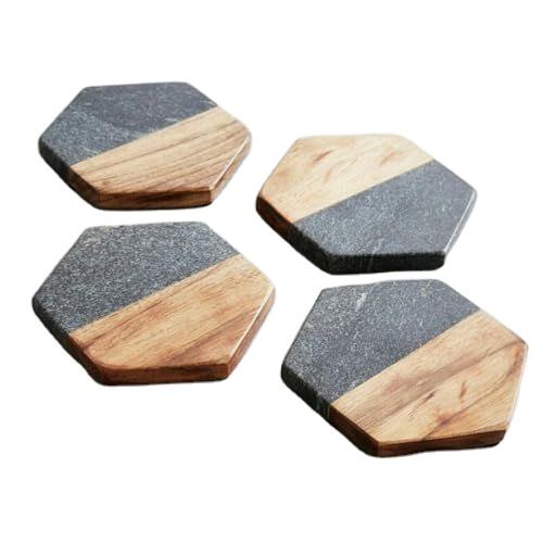 COUSTER Stylish Round Marble Wood Coasters Traditional Housewarming Gift for Cups Drinks Holder for Kitchen or Living Room Use