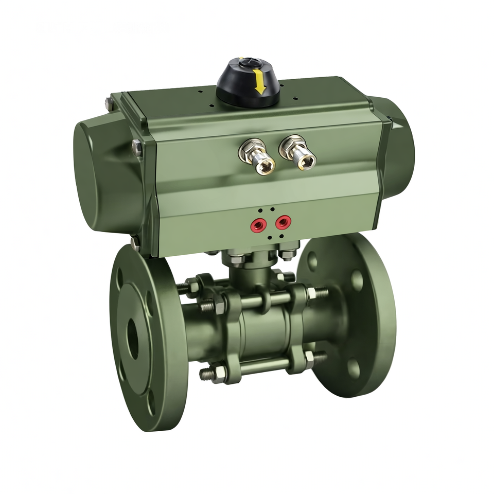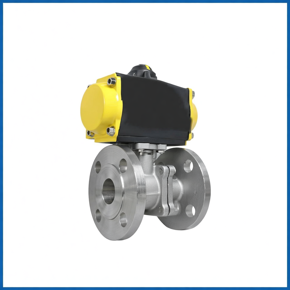 COVNA DN25 1 Inch 2 Way 3 PC Double Flanged Stainless Steel Ball Valve with Pneumatic Actuator