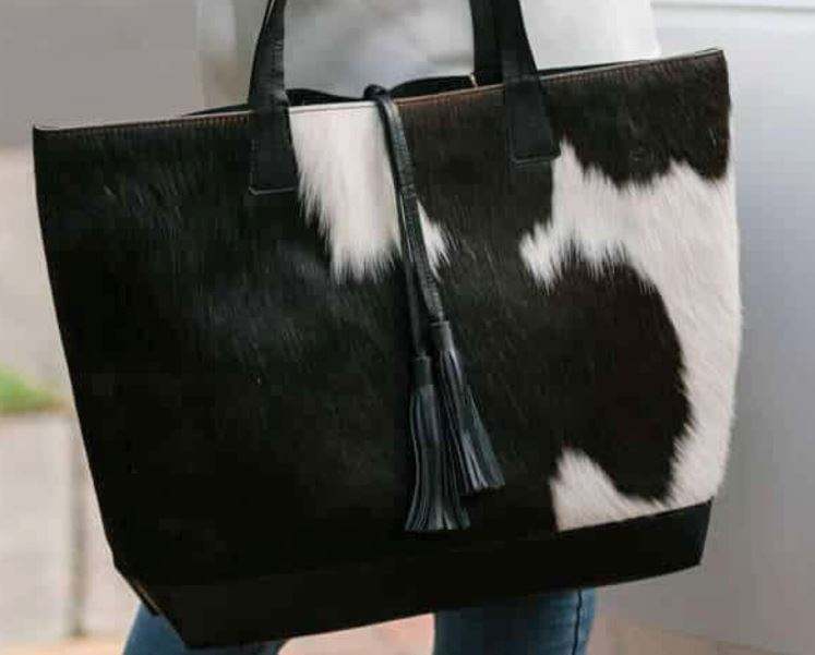 COWHIDE TOTE BAG Women's Handmade Cowhide Hair Purse Western Style Shoulder Bag Portable Zipper Closure for Daily Use Summer