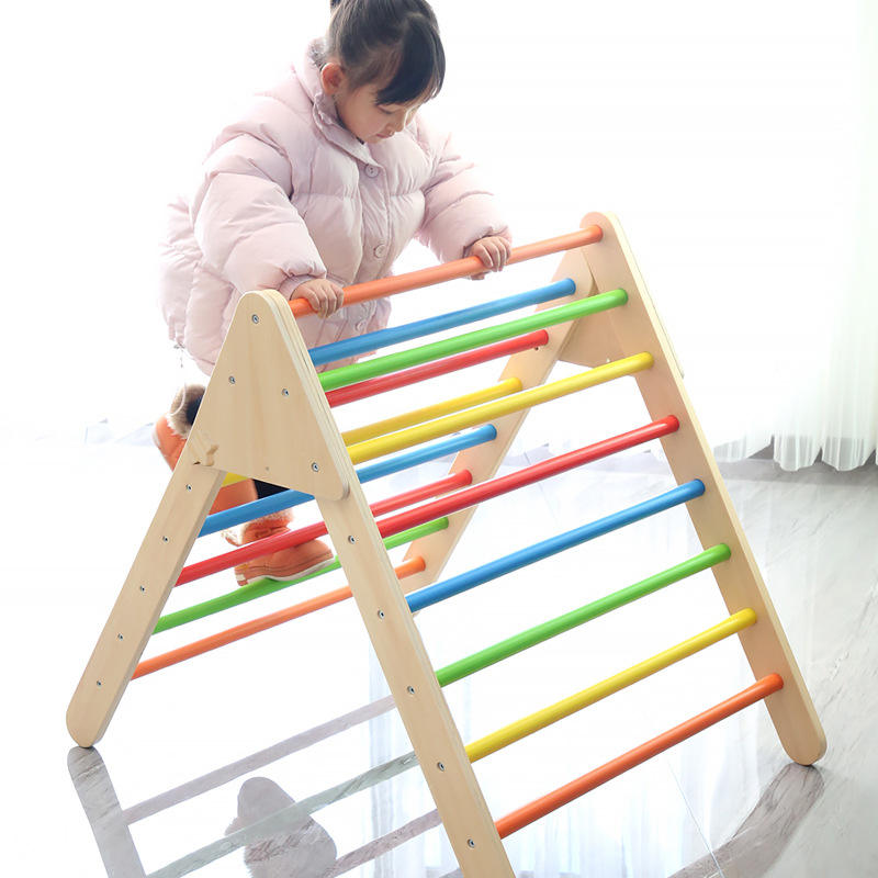CPC Foldable Rainbow Climbing Toys Indoor Gym Wooden Montessori Climbing Set Adjustable Height Triangle for Toddlers Boys Girls