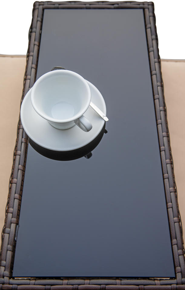 Material:Rattan, steel, tempered glass, polyester