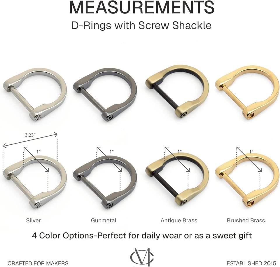 CRAFTMEMORE D Rings Screw In Shackle Horseshoe D Ring DIY Key Holder Purse Accessories For Inch Strap Pack Gold