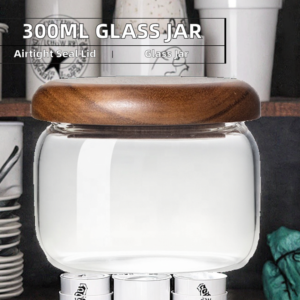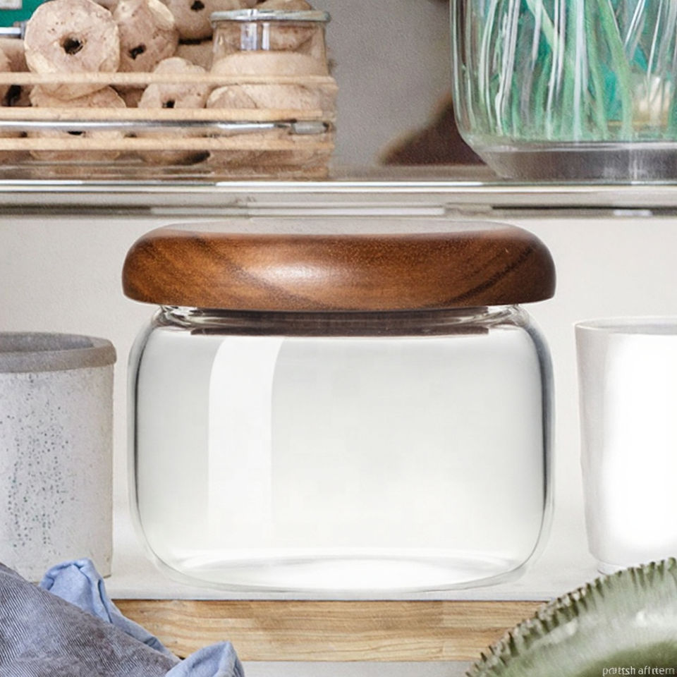 CRAFTS HUB CH-280 401-500ml L Glass Storage Jar Food-Safe Airtight Lid Folding Minimalist Design Coffee Container Wooden Lid