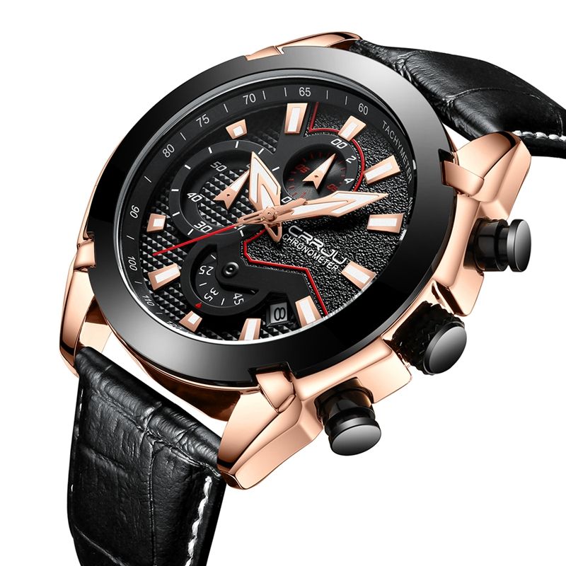 CRRJU Retro Modern Men's Fashion Sport Watches Men Quartz Chronograph Man Waterproof Brown Leather Date Clock Relogio Masculino