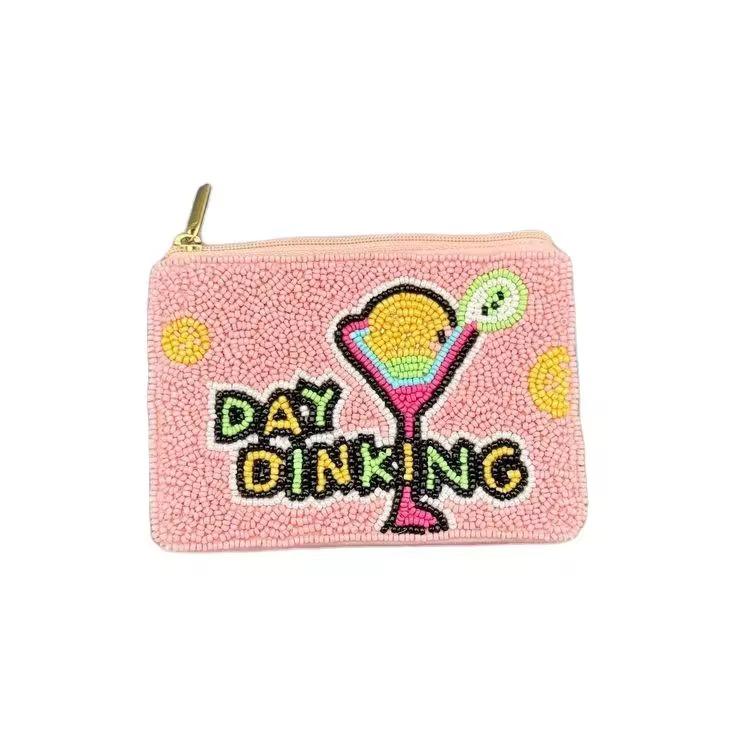 CRYSTAL CRAFT Vintage-style Glass Beaded Embroidery Handmade Customizable Color Size Coin Pouch for Daily Use Game Day Tailgate
