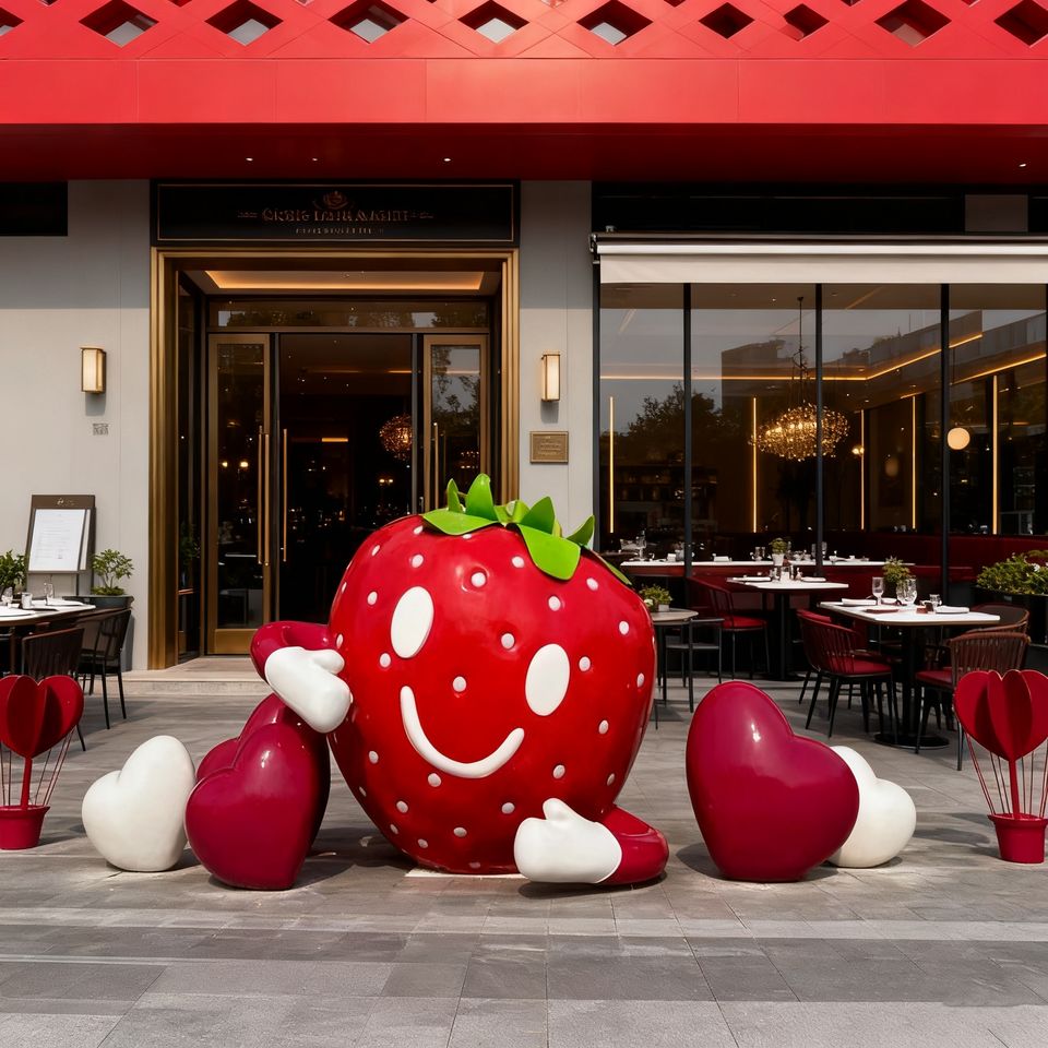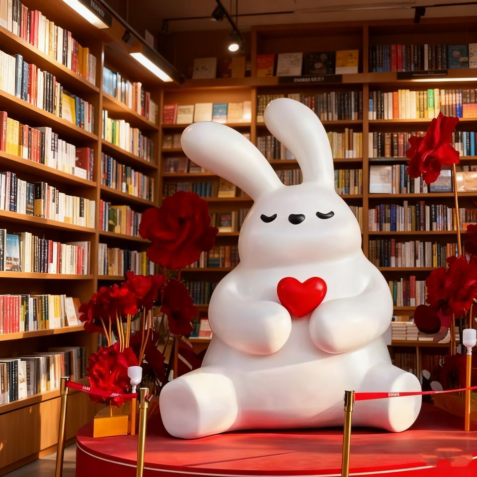 CS231 Fiberglass Unique Cartoon Rabbit Statue Resin Craft for Cultural Space Ornament Big Size Animal Sculpture with Red Heart
