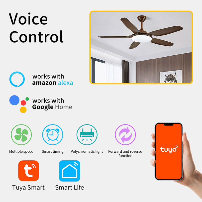CT10 220 Volt Chateau Deville Reversible Indoor Ceiling Fan with Light 52 Inch Blade and DC Motor for Patio