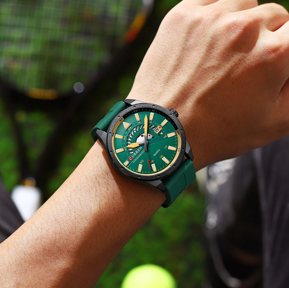 CURREN 8421 Sport Men Watch Reloj Luxury Business Waterproof Calendar Male Clock Green Rubber Classic Quartz Wristwatch for Man