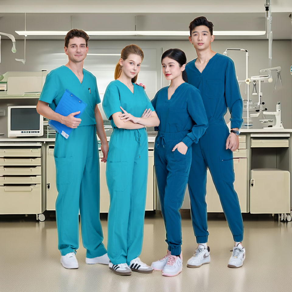 CUSTOM DESIGN antiwrinkle medical scrubs uniform set fashionable men with mandarin collar cargo scrub pants - LOW MOQ - OEM/ODM