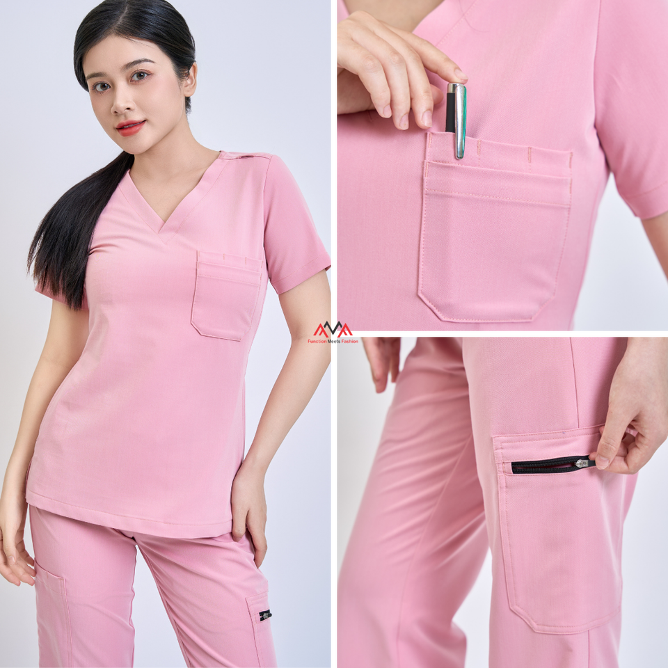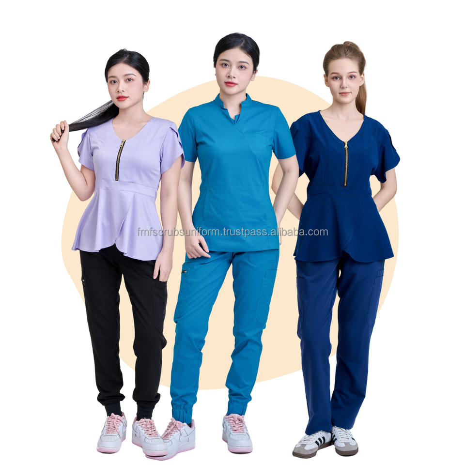 CUSTOM DESIGN top quality hospital wear two tone scrub set cargo pants shirt uniforms with nurse medical clothing - FMF uniform