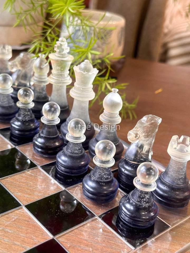 CUT QUALITE CUSTOM WOOD AND RESIN CHESS BOARD BOX Chess Game Set Luxury Resin Red Black Chess Piece by Tayyab Handicraft