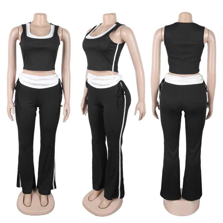 Viviblook Z724ST04 Women Outfits Tracksuit Color-blocking Vest Crop Top Casual Pants Sets Plus Zise Set 2 Piece Sets