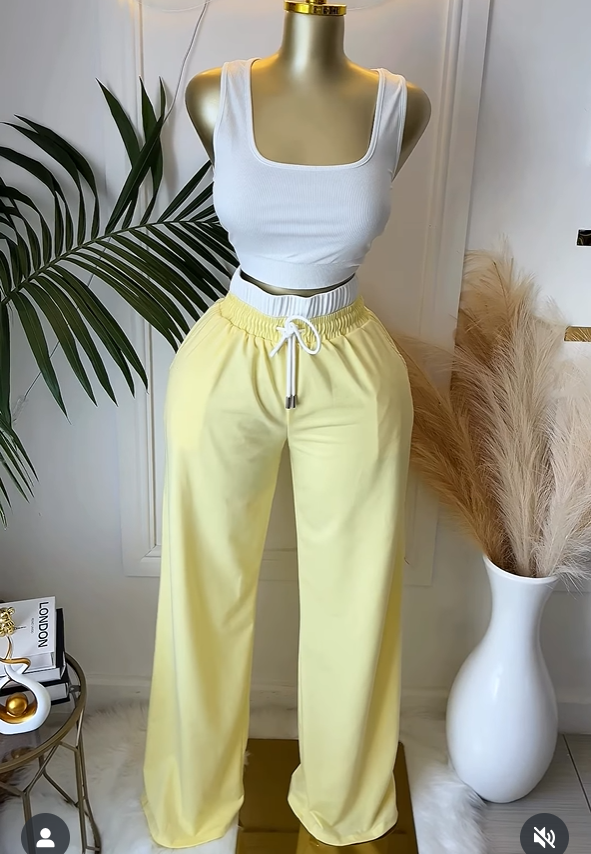 Viviblook Z725ST02 Women Outfits Tracksuit Casual Backless Tank Tops High Waisted Wide Leg Pants Plus Zise Set 2 Piece Sets