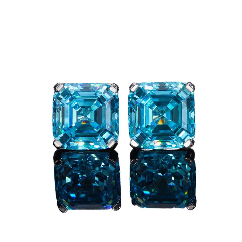 CZCITY Asscher Cut Diamond CZ Stud Earrings S925 Silver Rhodium Plated Square Zircon for Engagement Wedding Anniversary