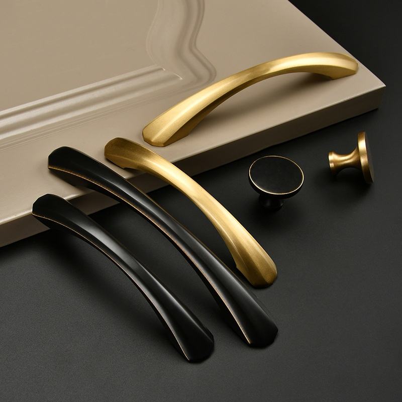 Cabinets Modern Single-Hole Gold-Black Brass Door Handles Pure Copper Cabinet Door Knobs for Kitchen Wardrobes Drawers