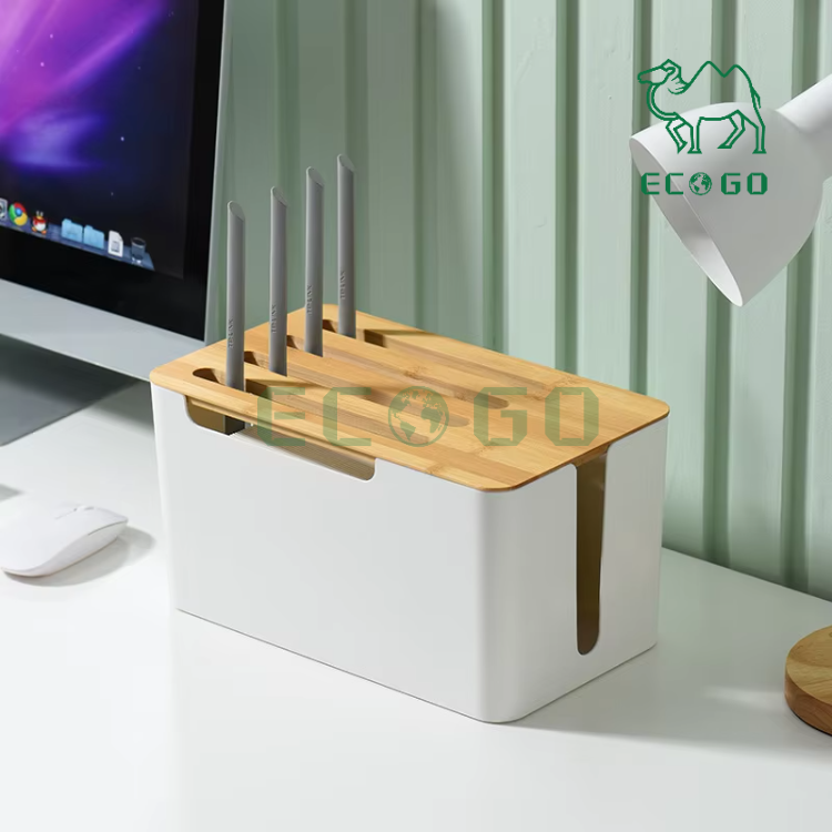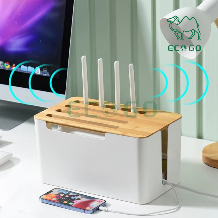 Cable Box With Bamboo Lid Wifi Socket Storage Holder Dust-proof Organizer Cable Management Box