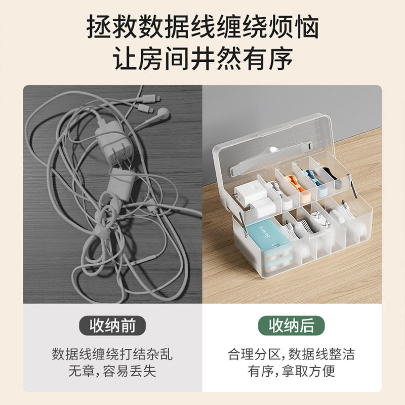 Cable Storage Box Rectangle Transparent Green Flip Top Desktop Organizer For Charging Cables Earphones Dustproof Drawer
